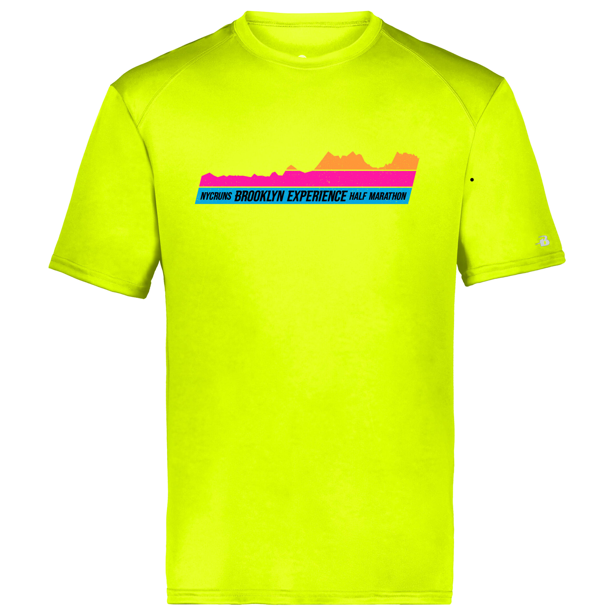 Brooklyn Experience Half Marathon Elevation design. Performance technical tee shirt features moisture wicking, odor resistant 100% poly 3.5 oz/sq.yd. (118 gsm) fabric, with paneled shoulders for athletic movement. Item ID bmpo838212m