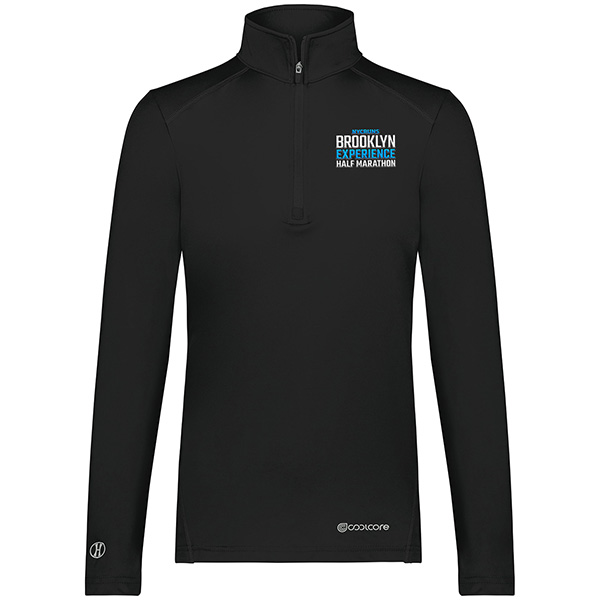 Brooklyn Experience Half Marathon Embroidery design. 4-Way stretch moisture-wicking fabric made wth 88% poly and 12% elastane, UPF 50+ sun protection, set-in sleeves with rolled forward shoulder seam, ladies fit. Item ID bmpe551181w