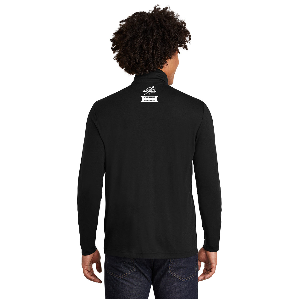 Brooklyn Experience Half Marathon Right Chest Print design. Lightweight moisture-wicking 1/4 zip pullover featuring a cadet collar, reverse coil zipper, set-in sleeves, open cuffs and hem, in a 4.4 oz/sq. yd 75/13/12% Poly/Cotton/Rayon fabric. Item ID bmpp401181m