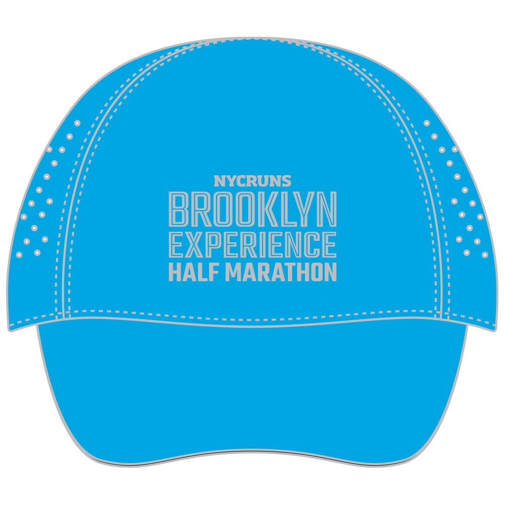 Brooklyn Experience Half Marathon Headwear. Lightweight wicking woven poly panels with Dry Tech mesh side panels; soft poly mesh wicking sweatband; adjustable back snap buckle; black underside bill to reduce glare; curved bill; machine washable. From Boco. Item ID bmphC312